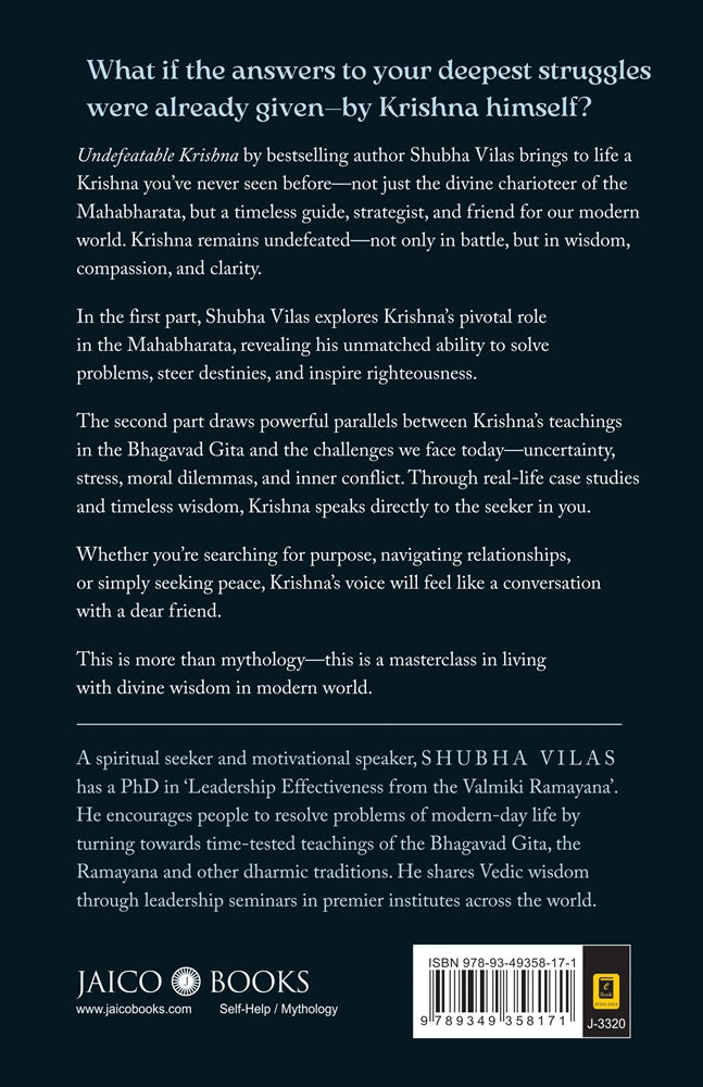Undefeatable Krishna by bestselling author Shubha Vilas brings to life a Krishna you’ve never seen before-not just the divine charioteer of the Mahabharata, but a timeless guide, strategist, and friend for our modern world. Krishna remains undefeated-not only in battle, but in wisdom, compassion, and clarity.